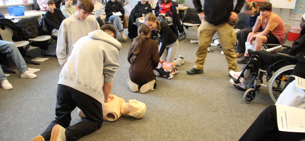 Die Schüler*innen des 9. Jahrgangs haben ihre Kenntnisse im Bereich Reanimation und Erste Hilfe erfolgreich aufgefrischt. Bereits im 8. Jahrgang hatte eine erste Einweisung stattgefunden, nun stand die gezielte Vertiefung und praktische Anwendung im Mittelpunkt.