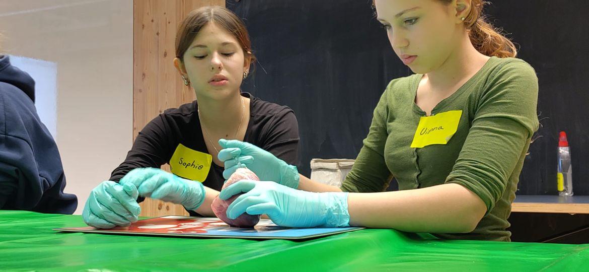 Ein besonderes Highlight des Besuchs war das Sezieren von Schweineherzen. Unter fachkundiger Anleitung untersuchten die Schülerinnen und Schüler die Herzstrukturen ganz genau und verglichen diese mit dem menschlichen Herzen. So wurde theoretisches Wissen aus dem Unterricht greifbar und verständlich.
