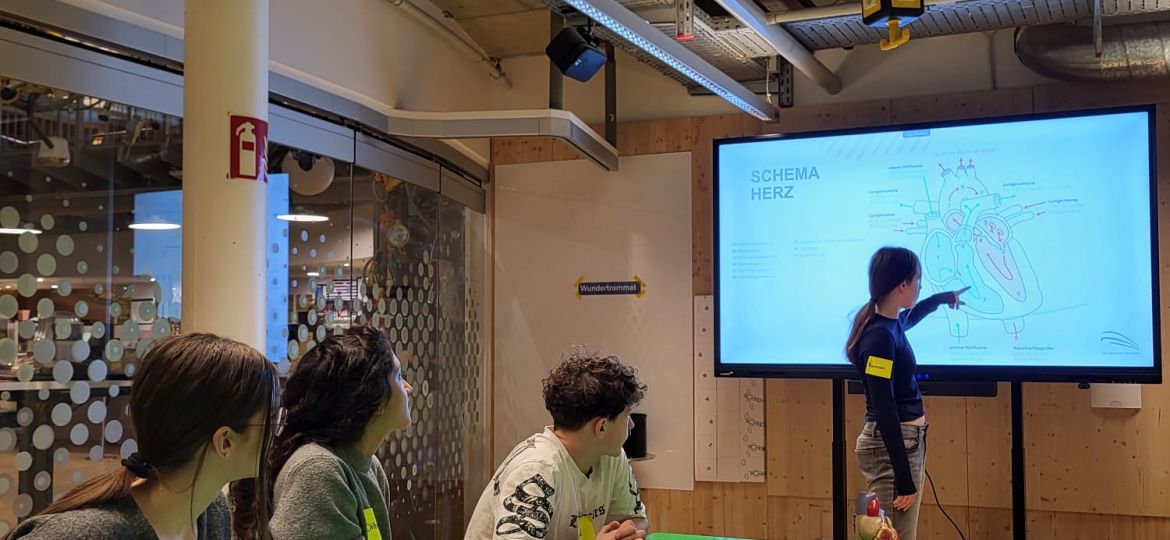 Passend zum aktuellen Unterrichtsschwerpunkt beschäftigten sich die Schülerinnen und Schüler intensiv mit dem Aufbau und der Funktion des menschlichen Herzens. In der interaktiven Ausstellung zum Thema Mensch konnten sie anschauliche Exponate entdecken, die verdeutlichten, wie Herz und Blutkreislauf zusammenarbeiten und den Körper mit Sauerstoff versorgen.