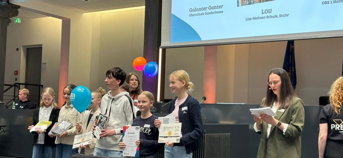 Jubel an der Lise-Meitner-Schule: Die Online-Schülerzeitung Lou hat beim landesweiten Wettbewerb „Unzensiert“ erstmals den 1. Platz in der Kategorie Realschule gewonnen – ein toller Erfolg für das engagierte Redaktionsteam!