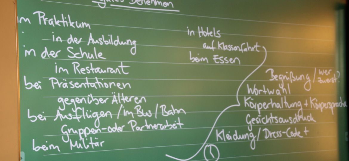 Die Schüler*innen der 8. Jahrgänge der Lise haben sich in den letzten Wochen einzeln mit Benimmregeln und höflichem Verhalten auseinandergesetzt. Viele Rollenspiele wurden dabei durchgespielt und reflektiert: Wie benehme ich mich im Restaurant? Wie verhalte ich mich im Vorstellungsgespräch? Wie benehme ich mich im Praktikum? Diese Fragen und noch viele mehr wurden diskutiert.